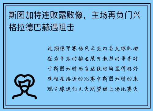斯图加特连败露败像,主场再负门兴格拉德巴赫遇阻击